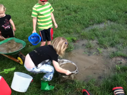 This is their mud bog hole full of water. C is standing in the middle.